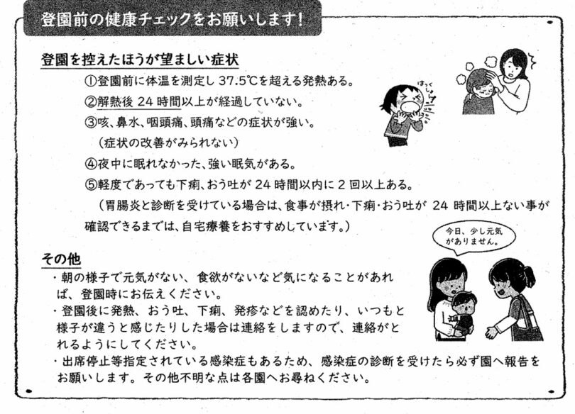※インフルエンザなどの感染症が流行しています。登園前に必ず検温してから登園してください。